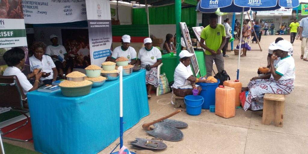 Sur invitation du Fond National de Finance Inclusive (FNFI), la mutuelle d’épargne et de crédit PROMOFINANCE, a pris part le mardi 09 avril 2019 à la 11ème édition du forum national du paysan Togolais. Il s’agit d’accompagner , ses membres des groupements AMA et NOVIGNON, à ce forum. Ces deux groupements bénéficiaires respectivement du crédit AGRISEF pour la production des céréales, notamment le soja, le maïs, le mil, le sorghos, et les cossettes; et du crédit AJSEF, pour la fabrication de pain de soja, pain de sorgho, pain de blé ont ainsi exposé leur produit sur le stand de FNFI, partenaire privilégié de PROMOFINANCE.